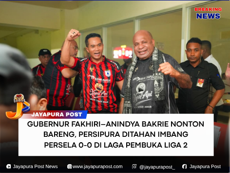 PAPUA,  Jayapura Post.Com — Gubernur Papua, Matius D Fakhiri, menghadiri langsung laga pembuka (kick off) Liga 2 Pegadaian Championship 2025/2026 yang mempertemukan Persipura Jayapura melawan Persela Lamongan pada Sabtu malam (11/04/2026). Kehadiran orang nomor satu di Papua itu semakin semarak dengan turut hadirnya Ketua Umum Kadin Indonesia, Anindya Bakrie.