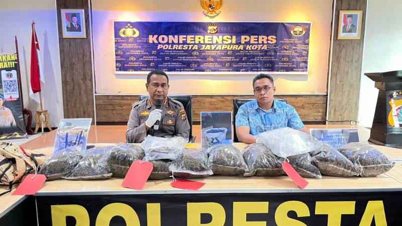 KOTA JAYAPURA, Jayapura Post.Com– Dalam pelaksanaan konferensi pers pengungkapan kasus Narkotika jenis Ganja pagi ini oleh Kapolresta Jayapura Kota KBP Fredrickus W. A. Maclarimboen, S.I.K., M.H., CPHR, dikatakannya 8,3 Kilogram Ganja yang ditemukan merupakan tangkapan dengan barang bukti terbanyak di Awal tahun 2026 milik tersangka seorang pria berinisial MI Alias A (29), dimana pada bulan lalu hanya mencapai 6 kilogram lebih dalam pengungkapan satu kasus.