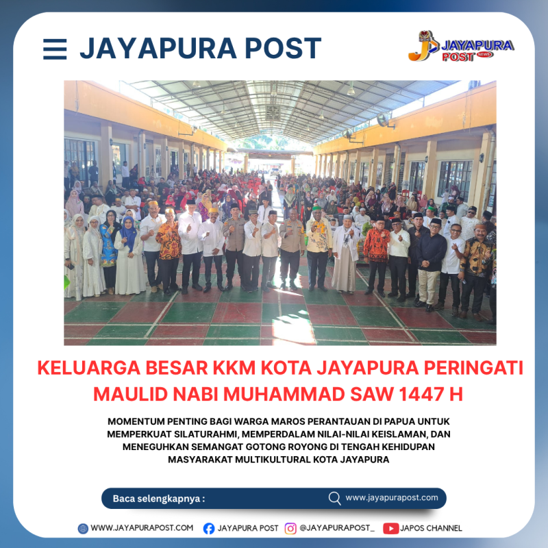 JAYAPURA, Jayapura Post.Com — Suasana penuh kekhidmatan dan kebersamaan terasa kuat dalam peringatan Maulid Nabi Muhammad SAW 1447 Hijriyah yang digelar oleh Keluarga Besar Masyarakat Maros Kota Jayapura, Kamis (16/10/2025).