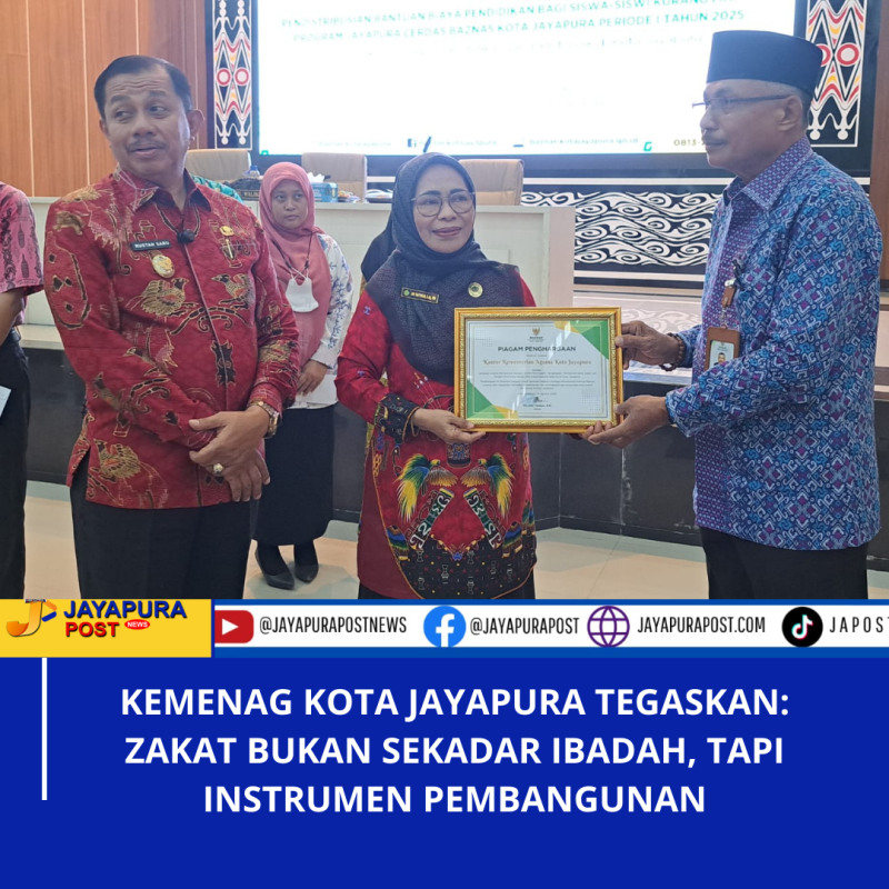 Dalam sambutannya di Aula Serbaguna Kantor Wali Kota Jayapura, Kepala Kemenag Kota Jayapura menekankan bahwa zakat adalah instrumen penting dalam pembangunan, bukan sekadar kewajiban agama.
