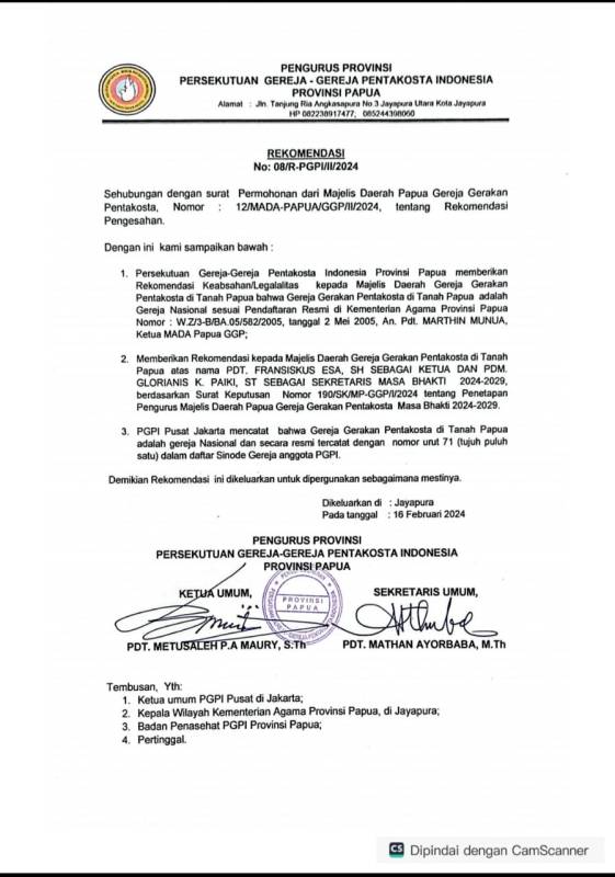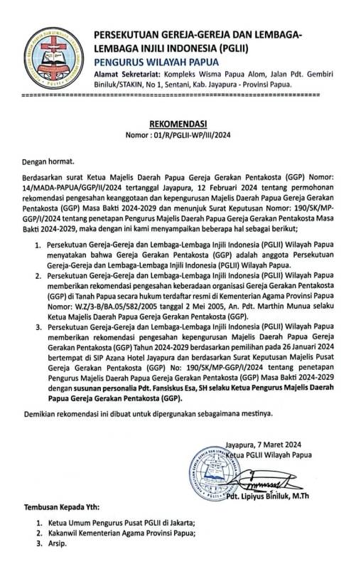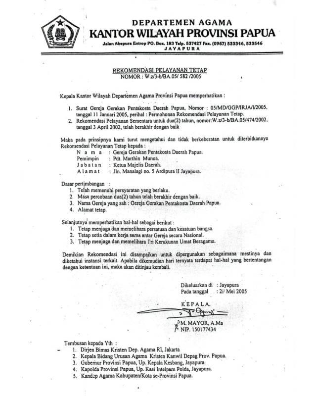 Bahkan ia menegaskan GGP Papua dibawah kepemimpinannya resmi terdaftar di Kemenag Papua dari tahun 2002 sampai dengan sekarang