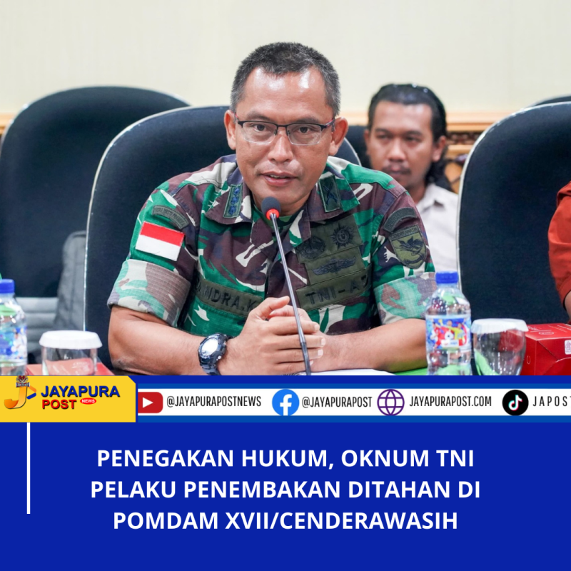 JAYAPURA, Jayapura Post.Com – Pelaku penembakan warga sipil Alm Sdr. Lambert Alias Obet di Lorong Sagita Entrop Kota Jayapura, Rabu (3/9/2025) sekira pkl. 00.45 Wit yakni oknum anggota TNI a.n. Pratu TB dari satuan Pomdam XVII/Cenderawasih saat ini langsung ditahan di Mapomdam XVII/Cenderawasih untuk diproses hukum mempertanggungjawabkan atas tindakannya tersebut.