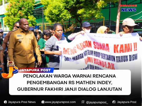 PAPUA, Jayapura Post.Com — Rencana pengembangan RS Mathen Indey di Kota Jayapura menuai penolakan dari warga yang telah lama bermukim di kawasan tersebut. Penolakan itu disampaikan langsung melalui aksi warga yang membentangkan spanduk sebagai bentuk keberatan terhadap rencana relokasi.