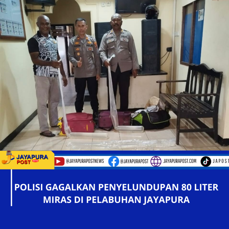 JAYAPURA, Jayapura Post.Com – Aksi penyelundupan minuman keras (miras) ke Kota Jayapura kembali digagalkan aparat kepolisian. Kali ini, Polsek Kawasan Pelabuhan Laut (KPL) Jayapura mengamankan 80 liter miras lokal jenis sopi asal Ambon yang coba diselundupkan melalui KM Dobonsolo.