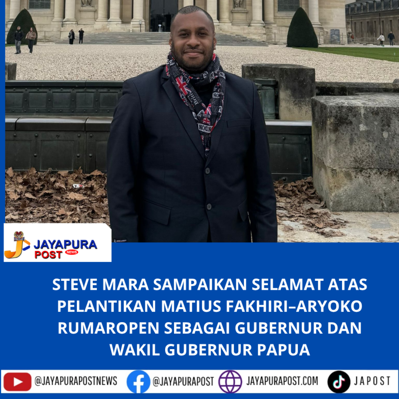 LONDON , Jayapura Post.Com – Tokoh muda Papua, Steve Mara, menyampaikan ucapan selamat atas pelantikan Matius Fakhiri dan Aryoko Rumaropen sebagai Gubernur dan Wakil Gubernur Papua 2025–2031. Ia menilai pasangan ini membawa semangat baru untuk membangkitkan Papua dari keterpurukan menuju masa depan yang cerah.